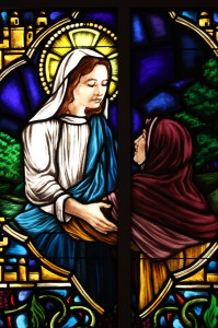 Created by Lynchburg Stain Glass, Lynchburg, Va., this stained glass image of the Visitation is located is at Holy Spirit Church, Atlanta, in the left transept among the first level of windows. Photo by Michael Alexander