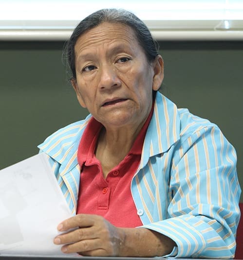 Adelissa Arteaga of Peru listens to the instructor explain the directions for the English exercise. Photo By Michael Alexander