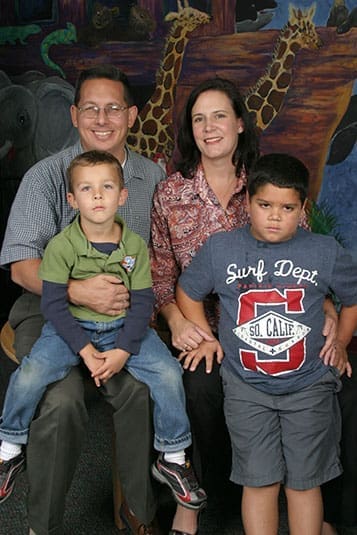 (Clockwise, from top right) Cristina Zakis was supported by her sons Ricky, 7, and Paul, 4, and her husband Peter in her effort to donate her kidney to parishioner and family friend Chris Wilson. Photo By Michael Alexander