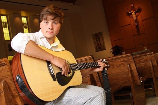 Pinecrest Academy senior Evan Montalbano is a self-taught guitarist. At the age of 14 he encountered personal tragedy when his mother died unexpectedly. With the support of his grandparents, godfather and the school community, Montalbano persevered in his time of grief, and he will attend the University of Georgia, Athens. Photo By Michael Alexander