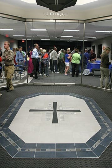 People gather in what will serve as the Family Life Center’s youth room. Photo By Michael Alexander