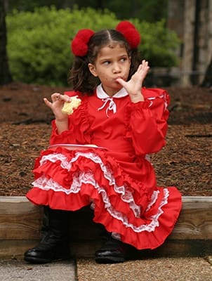Seven-year-old Emillia Souza enjoys the food at the July 15 Brazilian Festival at St. Jude the Apostle Church, Atlanta. Photo By Michael Alexander