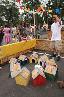 Pimpo the rabbit causes his game vendor to give up a prize when a young child guesses the right house he will enter. Photo By Michael Alexander