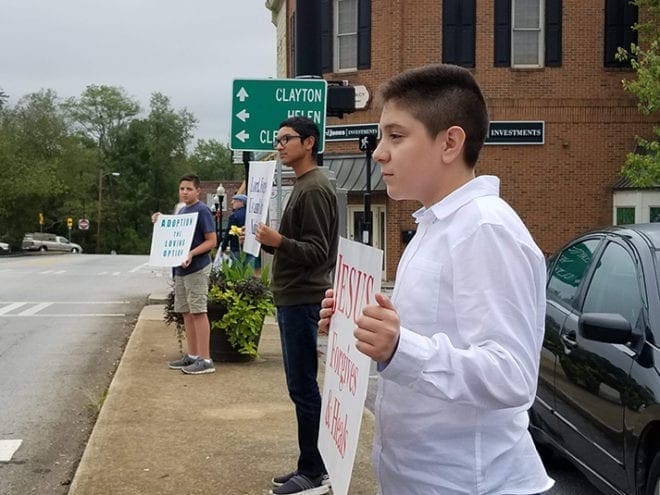 CLARKESVILLE—On an overcast fall day, more than 50 people stood along Washington Street in downtown Clarkesville holding up anti-abortion signs as part of an annual Life Chain event.