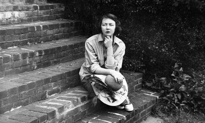 Catholic writer Flannery O’Connor is seen in a Sept. 22, 1959, photo, sitting on the steps of her home in Milledgeville. CNS photo/Floyd Jillson/Atlanta Journal-Constition, via AP, courtesy “Flannery.”