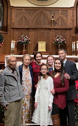 Julia Brosas, second from right, who had been cast as Jo March in Notre Dame Academy’s spring production of “Little Women,” is pictured with her parents, grandparents and sisters. The school will celebrate graduates with a parade and caravan. Photo Courtesy of the Brosas Family
