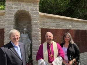 Attending the blessing of the Ignatius House Columbarium were, from left to right, Frank Mulcahy, then-chairman of the board of trustees; Bishop Joel M. Konzen, SM, and Maria Cressler, executive director of the retreat center.