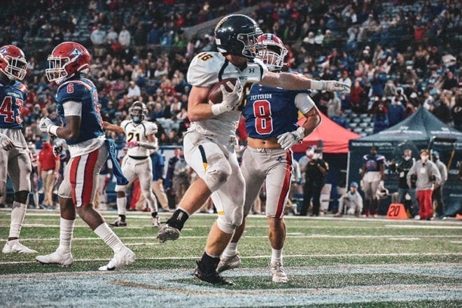 After Jefferson’s Jordan Perry scored two rushing touchdowns of his own in the second quarter, the teams went into halftime tied at 14-14.