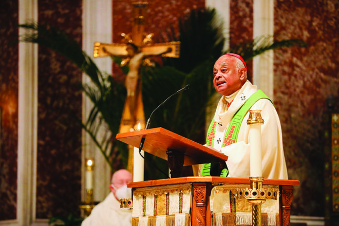 Cardinal Wilton D. Gregory of Washington delivers the homily at the Mass for Life at the Cathedral of St. Matthew the Apostle in Washington Jan. 29, 2021. The Mass and a youth rally were held before the annual March for Life. Because of the ongoing pandemic, the D.C. event was held virtually and livestreamed across various social media platforms, as was the national March for Life. CNS photo/Andrew Biraj, Catholic Standard