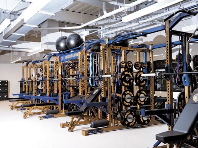 A view of the weight room inside the new St. Joan of Arc Field House at St. Pius X High School. The new field house was part of the “Ring the Bells” capital campaign. Photo by Johnathon Kelso