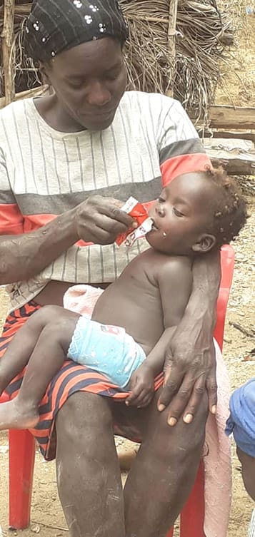 A Haitian mother feeds her child a peanut butter mixture to combat malnutrition. ServeHAITI’s Medika Mamba program provides the mixture of oil, peanut butter and minerals to help babies and children survive and grow. Photo Courtesy of ServeHAITI
