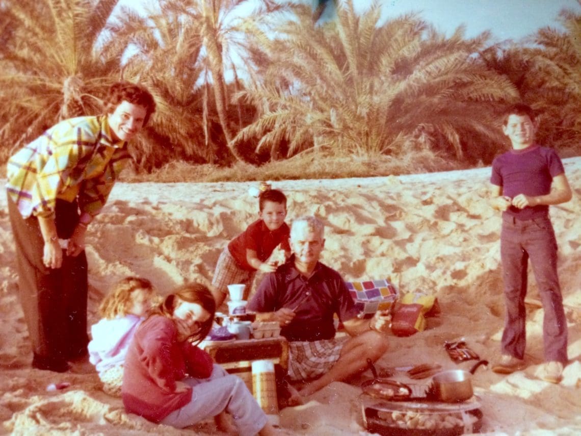 My family during our years in Abu Dhabi. I’m in the red shirt, leaning against my father. My older brother, Joe, is all legs to the right.