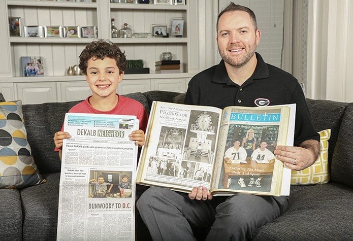 But here’s where it gets interesting. I photographed Jackson’s dad, Nick, when he was a 17-year-old senior at Atlanta’s St. Pius X High School. Nick appeared on the cover of the September 3, 1998 Georgia Bulletin back-to-school issue (seated on the right, wearing jersey #44) with two other Pius students, Joey Miller and Katie Griffin.