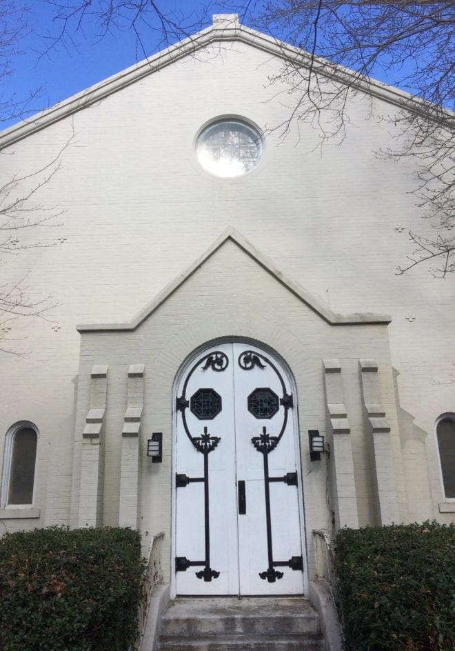 Google Maps helps you see the original church building, with the gabled roof, on the right