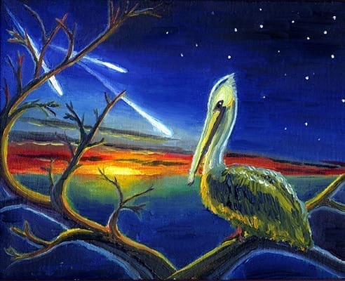When the wind stilled momentarily, the water seemed to relax, loosening its muscles in surrender. Moments later, thin fingers of orange light touched the oyster beds, transforming them to scarlet.