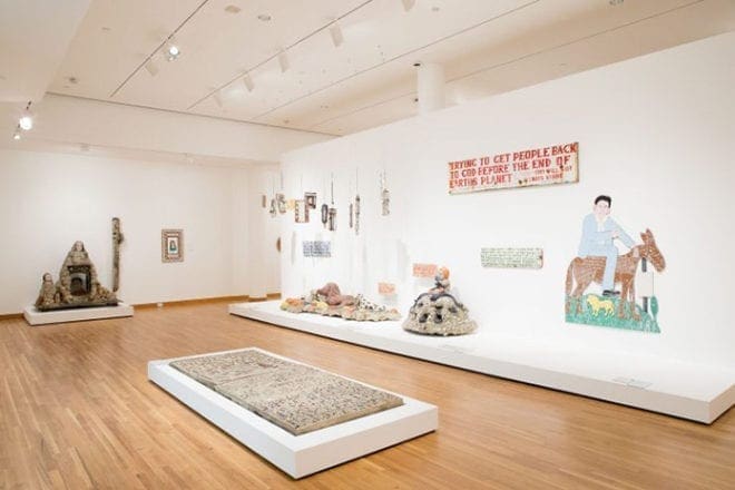 Of course, one cannot consider the rich heritage of Southern outsider art without taking into account the remarkable achievement of the Reverend Howard Finster of Georgia, who is the most famous of all Southern folk artists, and whose life’s work is simply astonishing. The High has assembled a great tribute to Finster’s career, including a fine installation related to his Paradise Garden, the sprawling folk art property in Summerville that Finster created over several decades, and which is once again thriving under the auspices of a foundation dedicated to its preservation.