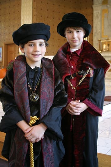 Restoring what once was part of the Halloween tradition, Catholic schools often have kids dress up as saints. In 2006, then third graders Thomas Moore, left, and London Jolly dressed up as their school’s patron saint, St. Thomas More. Photo By Michael Alexander
