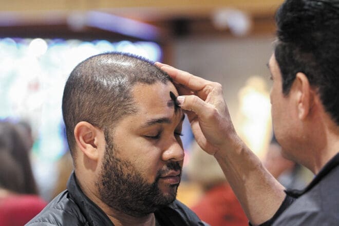 A man receives ashes in 2020 at St. Thomas the Apostle Church in Smyrna. For all the Ash Wednesdays that columnist David King has puzzled and prayed over, he has supplemented visits to church with the reading of T.S. Eliot’s poem, “Ash Wednesday.” Photo by Michael Alexander