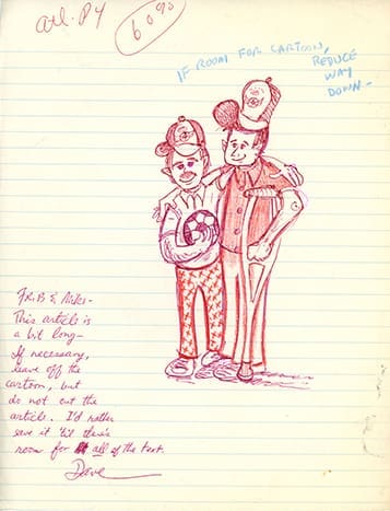 McGill offered a cartoon to accompany the piece, on which he wrote to editor Father Noel Burtenshaw and associate editor Michael Motes: “Fr. B & Mike, This article is a bit long. If necessary, leave off the cartoon, but do not cut the article. I’d rather save it ‘til there’s room for all of the text.”