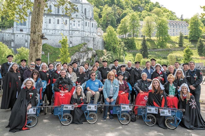 Cada año, la Orden de Malta viaja a Lourdes con los enfermos, a quienes llaman “malades”, y sus acompañantes designados, y con los caballeros y damas de la orden, el auxiliar, capellanes y voluntarios.