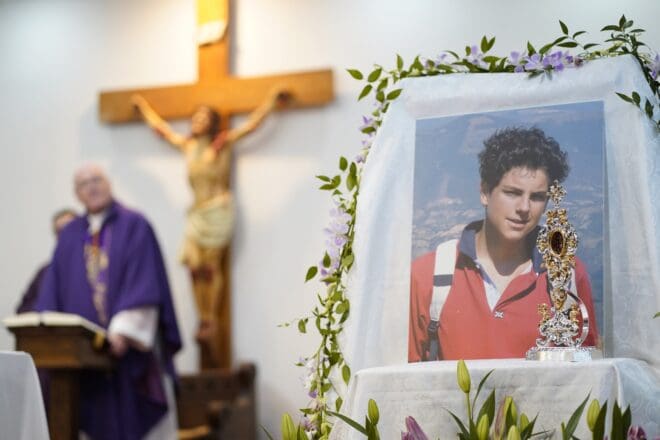 Carlo Acutis nació el 3 de mayo de 1991 en Londres, donde trabajaban sus padres. Unos meses después, la familia se mudó a Milán. Desde muy temprano, Carlo tuvo una fe profunda. Era evidente para todos que amaba a Dios y tenía una devoción especial a la Santísima Virgen. Asistía a misa tan a menudo como podía para recibir a nuestro Señor en el Santísimo Sacramento. Una vez describió su relación con la vida eucarística como la “autopista al cielo”. Su hora santa y el tiempo que pasaba rezando el rosario eran “su cita más importante del día”. Describía a la Santísima Madre como “la única mujer en su vida”, y les lanzaba besos a ella y a Jesús cada vez que pasaba por una iglesia. Iba a confesarse semanalmente. En palabras de Carlo: “Lo único que debemos temer es el pecado”. Sus padres no eran católicos practicantes. Sin embargo, su testimonio de fe condujo a una profunda conversión en su madre. Como dijo un sacerdote cercano a él: “Consiguió arrastrar a sus familiares, a sus padres, a misa todos los días”.