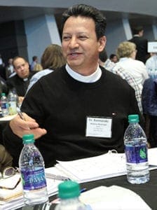 Father Fernando Molina-Restrepo, pastor of Church of the Transfiguration, Marietta, shares some thoughts with parish staff members during an afternoon session at the Amazing Parish conference. Photo By Michael Alexander
