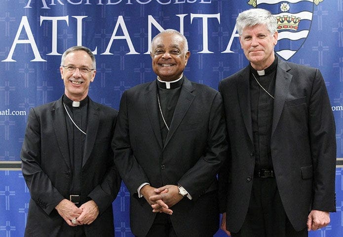 “Estoy encantado de presentárselos a ustedes, mi familia de Atlanta,” dijo el arzobispo. “Durante los próximos meses y años, llegarán a conocer a este hombre maravilloso, quien en este momento está muy nervioso, y conocerán su bondad y compasión”.