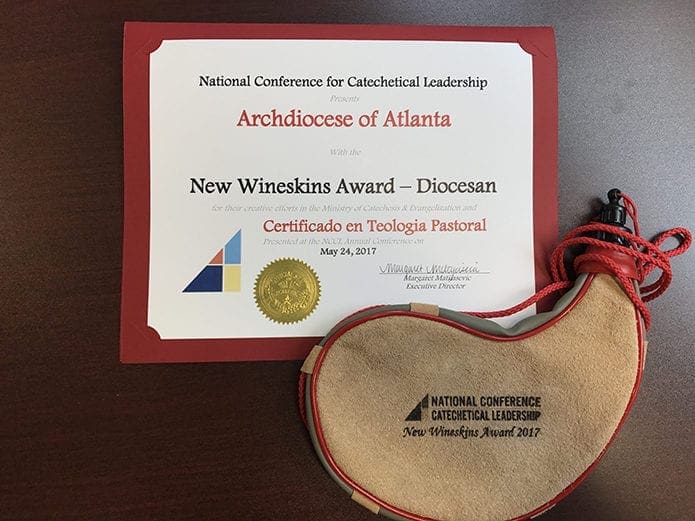 ATLANTA—La Arquidiócesis de Atlanta recibió el Premio “New Wineskins” por su innovador programa de certificación en teología pastoral en español llevado a cabo en colaboración con la Universidad de Dallas.