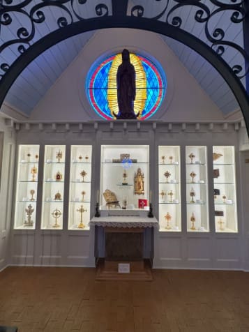 La Iglesia St. Paul the Apostle modificó una capilla existente para acoger las reliquias. Los objetos se encuentran en tres vitrinas estilo museo detrás de una puerta. Entre las donaciones a la parroquia también se encuentran objetos pertenecientes al Papa Inocencio X: un cáliz, un atril para misal y una talla de madera que representa la Anunciación.