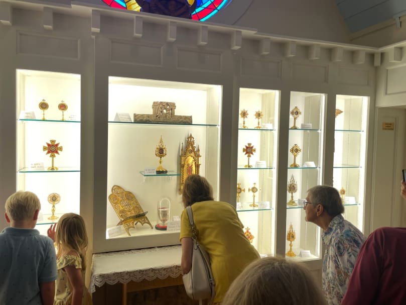 La Iglesia St. Paul the Apostle modificó una capilla existente para acoger las reliquias. Los objetos se encuentran en tres vitrinas estilo museo detrás de una puerta. Entre las donaciones a la parroquia también se encuentran objetos pertenecientes al Papa Inocencio X: un cáliz, un atril para misal y una talla de madera que representa la Anunciación.