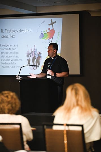 Entre los ponentes estuvo el Padre Núñez, quien dirigió el primer panel, “Año Jubilar: Peregrinos de la Esperanza”. En este taller, el sacerdote animó a los diáconos a asumir sus roles como peregrinos de esperanza en la Iglesia.