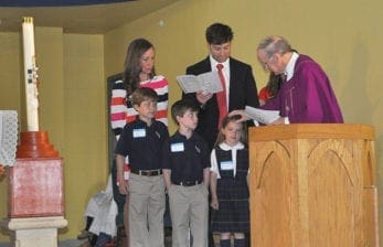 Three youngsters were the first baptisms at the new campus of St. Joseph Church and School. The Athens school community celebrated the event with the Scott family on Friday, April 11. Jackson Scott, who is in second grade, Clayton Scott, in kindergarten, and Anniston Scott, who is in the preschool, were baptized by Father David […] Full Story