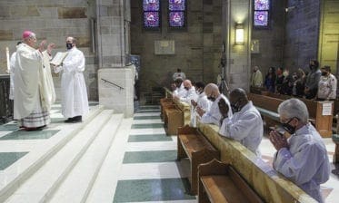 Published February 9, 2021Calling the candidates “dear sons,” Archbishop Gregory J. Hartmayer, OFM Conv., ordained seven men to the diaconate with the ancient tradition of laying on of hands and praying over them.