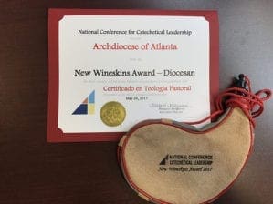 Published August 3, 2017ATLANTA—The Archdiocese of Atlanta received the New Wineskins Award for its innovative Spanish certificate program in pastoral theology taking place in partnership with the University of Dallas. The award was given at the 81st National Conference for Catechetical Leadership, held in Dallas May 22-25. The online study program was created to form leaders and strengthen […] Full Story | En Español