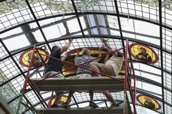Century-old skylight reborn with icons of Christ, evangelists