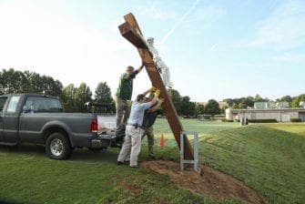 Published September 19, 2019A new 14-foot tall cedar crucifix at Blessed Trinity High School Stadium serves as a reminder of God’s love to all who visit the Roswell campus.