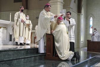 Published October 15, 2020In the pews at St. Peter Chanel Church was the composer of “Pax et Bonum,” Vincent Ambrosetti. He listened as a smaller-than-usual group of musicians led the congregation and prayed with his longtime friend, Archbishop Gregory Hartmayer.
