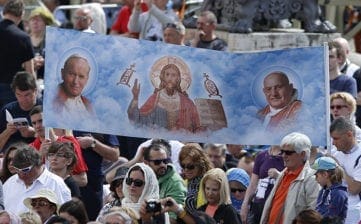 Pope Francis, with retired pope, canonizes Sts. John and John Paul