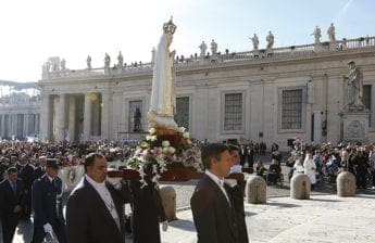 Published October 24, 2013VATICAN CITY (CNS)—Before a congregation of more than 100,000 in St. Peter’s Square, Pope Francis formally entrusted the world to Mary. “We are confident that each of us is precious in your sight,” the pope said Oct. 13, facing the statue of Mary that normally stands in the shrine at Fatima, Portugal. “Guard our lives […]