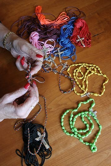“I have a purse full of twine and full of rosaries in every stage of completion,” she said. “Rosary Army has been a real answer. I didn’t know what I was going to do with all the rosaries I was making.”