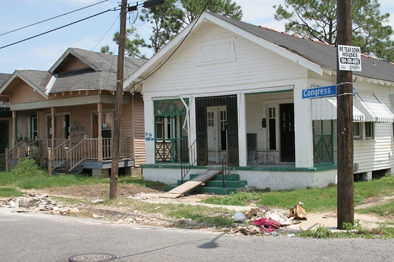 Nearly a year later some neighborhoods in New Orleans’ St. Bernard Parish are like virtual ghost towns where abandoned commercial and residential property remains a vivid reminder of the devastation Hurricane Katrina left behind. Photo by Michael Alexander