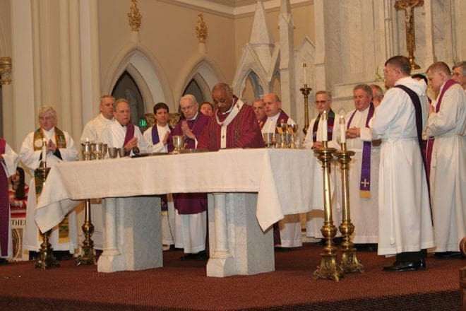 Joining Archbishop Gregory at Mass was Archbishop-emeritus John F. Donoghue and nearly 20 priests and deacons. Most of the clergy wore purple vestments; it is the color the church uses to show penance.