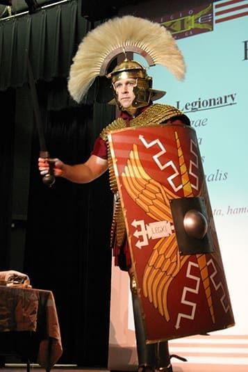 Students studying Latin at St. Pius X High School received a living history lesson Jan. 11 from first-century Roman soldiers brought to life by Legio XI, a Georgia-based reenactment group.