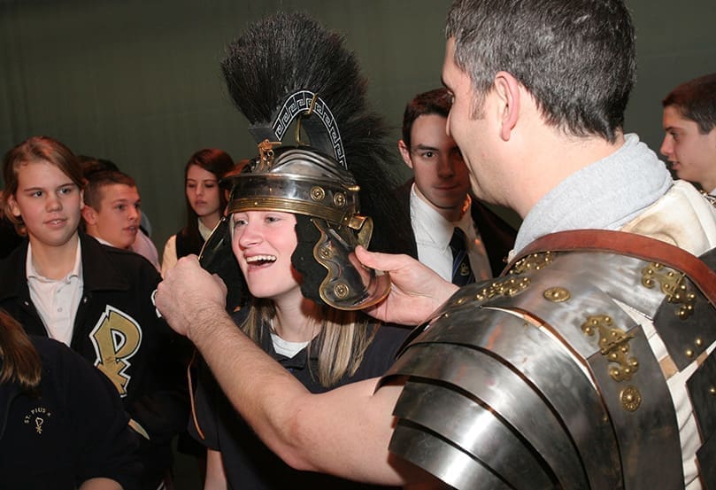Students studying Latin at St. Pius X High School received a living history lesson Jan. 11 from first-century Roman soldiers brought to life by Legio XI, a Georgia-based reenactment group.