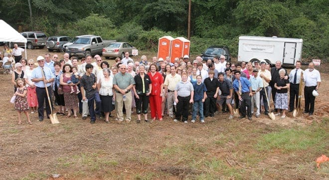 Following Mass, car pools and caravans traveled several miles to the new property, where tents and refreshments were set up to provide a sanctuary from the sweltering Georgia sun.