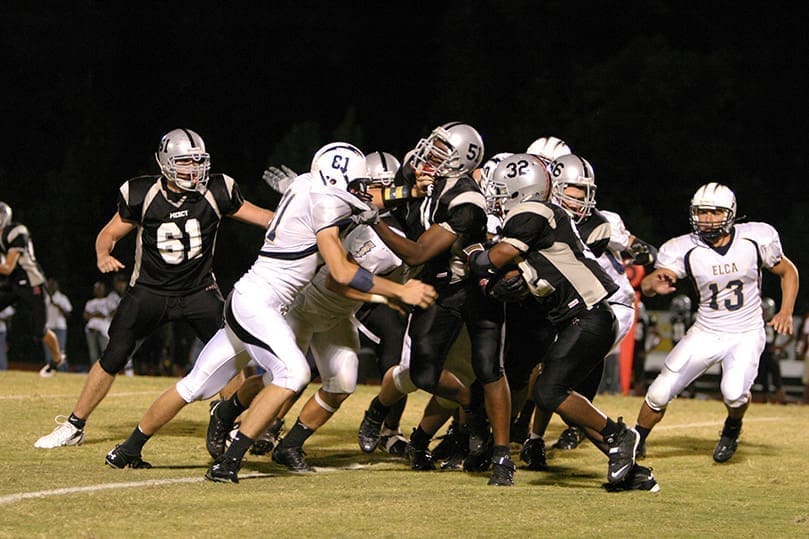 An undermanned Our Lady of Mercy High School football team played with a lot of determination and heart despite a 28-0 loss to Eagles Landing Christian Academy (ELCA) of McDonough Sept. 26. Mercy managed to hold ELCA scoreless until the last two minutes of the second quarter when ELCA running back Van Jakes took it in from two yards out for the only first half touchdown. ELCA scored its remaining 21 points in the fourth quarter. Mercy generated 237 yards of total offense, 121 on the ground and 116 in the air, and its defense intercepted two passes and recovered two fumbles in the game’s first half, but they were unable to convert the turnovers to points. Mercy senior running back Jarrell Bankhead led his team in receiving and rushing with 91 and 109 yards, respectively. Mercy (1-3) travels to Roswell to play Fellowship Christian School (2-3) Friday, Oct. 3.