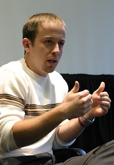 Twenty-three-year Virginia Tech graduate student Jeff Yacup talks about his experience as a senior undergraduate student during the days and weeks following the 2007 campus shooting. Photo By Michael Alexander