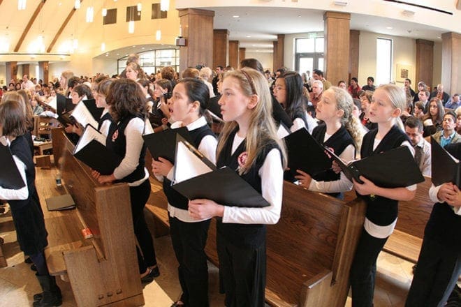 Members of the Immaculate Heart of Mary School choir sing the holy Communion song, “In Every Age.” Photo By Michael Alexander