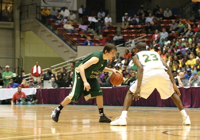 Several hundred Blessed Trinity faithful in the crowd stood with screams of support and applause as their team took to the court for the final quarter. With 6:12 left, Blessed Trinity went on a 7-2 run. With 5:05 remaining, Blessed Trinity senior guards Ryan LeGates and Eric Rouse hounded Dublin point guard Rashard Smith in the backcourt for a near steal, but instead the official called a foul on LeGates. With just under 5 minutes remaining, Blessed Trinity pulled to within 10, but that is as close as the Titans would get. The Dublin team, shooting nearly 70 percent from the field for the game, pulled away for good to win the Class AA championship by 15.
