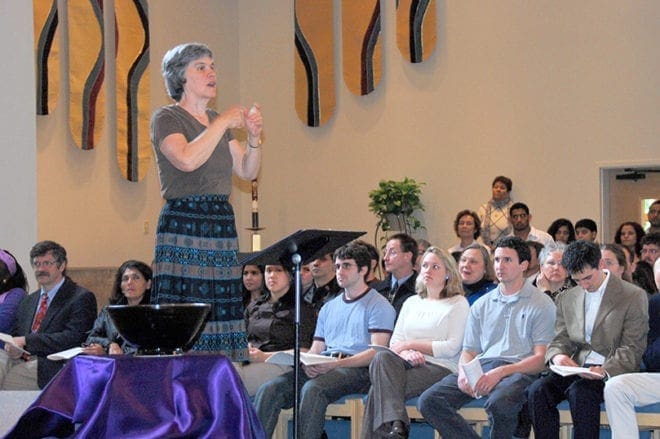 During the Rite of Election and Call to Continuing Conversion at Holy Cross Church, Atlanta, Kathy Byrne uses American Sign Language to translate the service for those in the deaf community. Photo by Cindy Connell-Palmer/Archdiocese of Atlanta